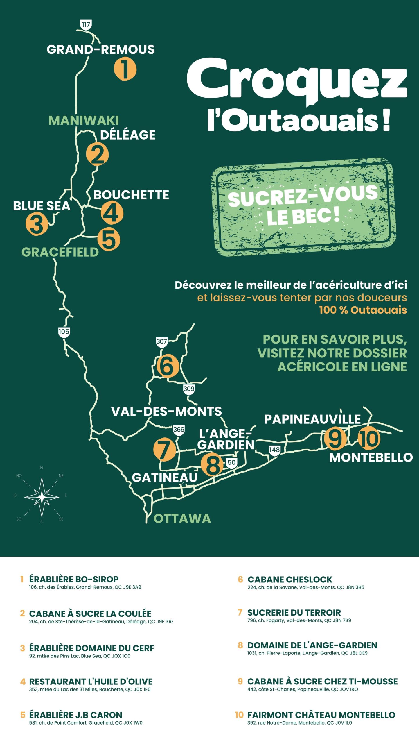 With Croquez l’Outaouais, set out to meet our passionate producers and discover the authentic flavours of our region. From maple taffy on snow to traditional meals, from pure maple syrup to handcrafted sweets, every stop is a connection, and every bite is a taste of local pride.